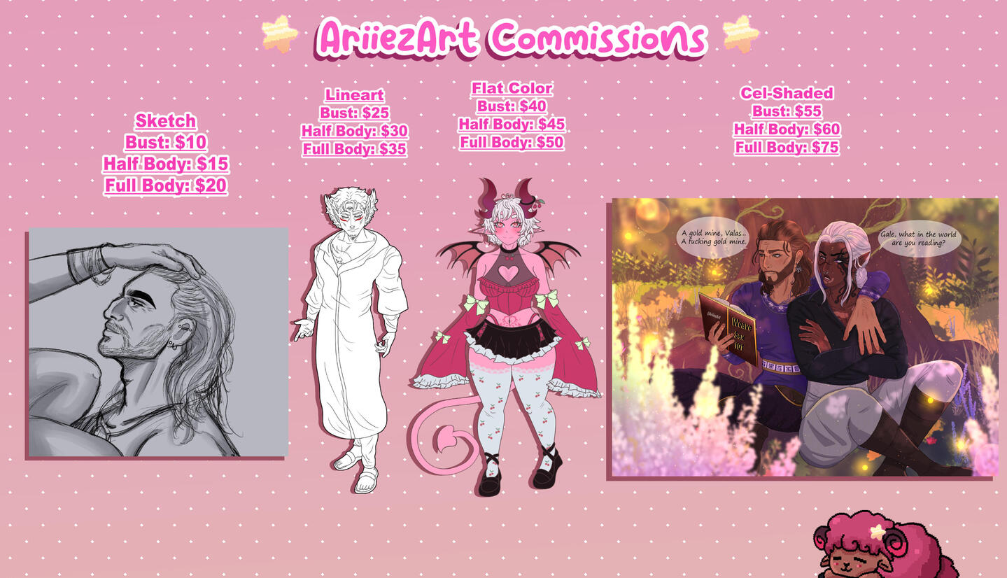 - The listed prices reflect the base cost of the commission. Additional fees may apply depending on the complexity and extra details of your request.